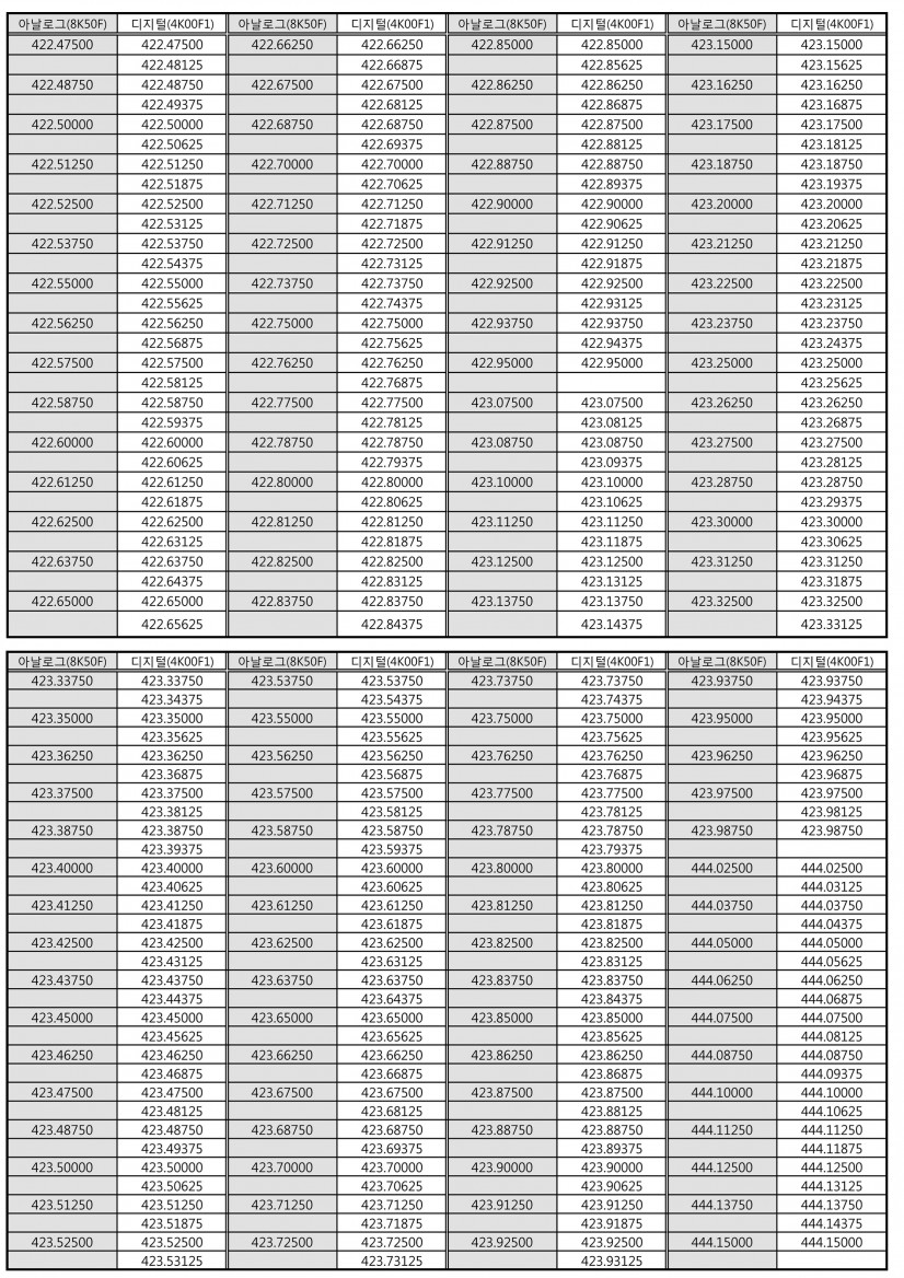 목록 [기타] 400M 간이주파수 차트 작성자 잘텍 작성일 17-05-01 14:23 | 조회 53,696 | 댓글 0 본문 아날로그 / 디지털 이전글다음글 댓글목록 0 등록된 댓글이 없습니다. 목록